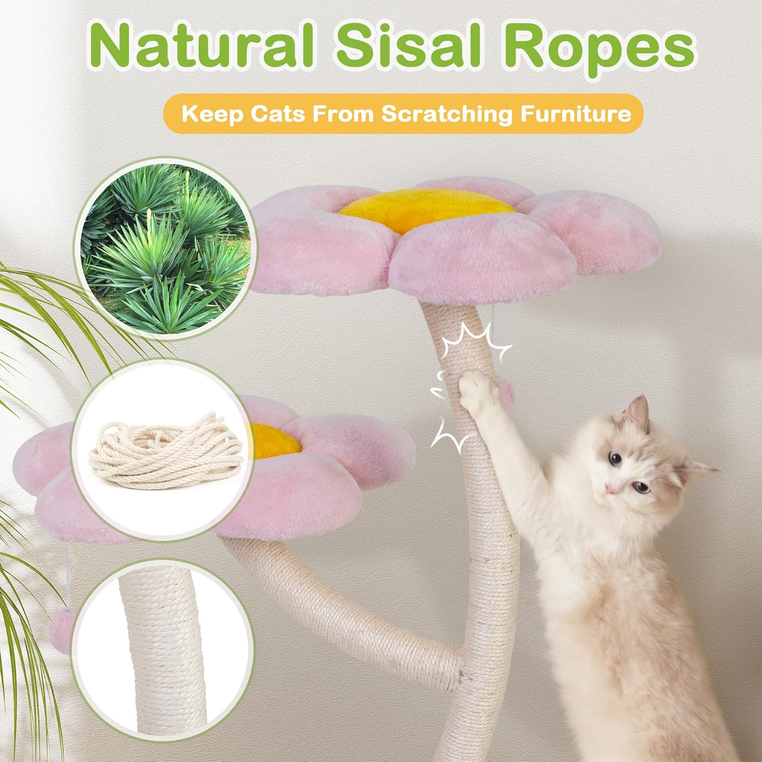 - ??57″ Aesthetic Cat Tree with Charming Floral Design??Let Cats Sleep on a flower – Different from normal cat trees, our enchanting flower cat tree blending with pink, With the total height of 57″ in 5-level structure, not only an eye-catching paradise that provides perfect play and rest area for your feline friends, but also fresh your living room as decoration. Soft fabric on every level giving your kitty the royal treatment with purr-worthy nap