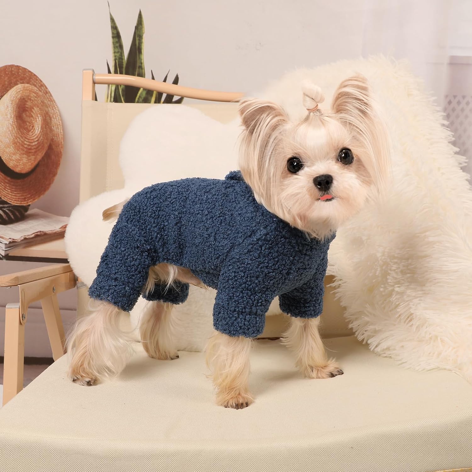 • ??Durable And Easy to Clean??These dog sweaters onesie pajamas and puppy clothes kitten pajamas are easy to clean and can be thrown into the washing machine on the cold cycle. Then air dry or put them in the dryer for a short time (low temperature drying, below 30?? is better). Wear this soft plush chihuahua clothes and yorkie clothes to keep your baby warm and cozy all day long and always stay in fashionable style.
